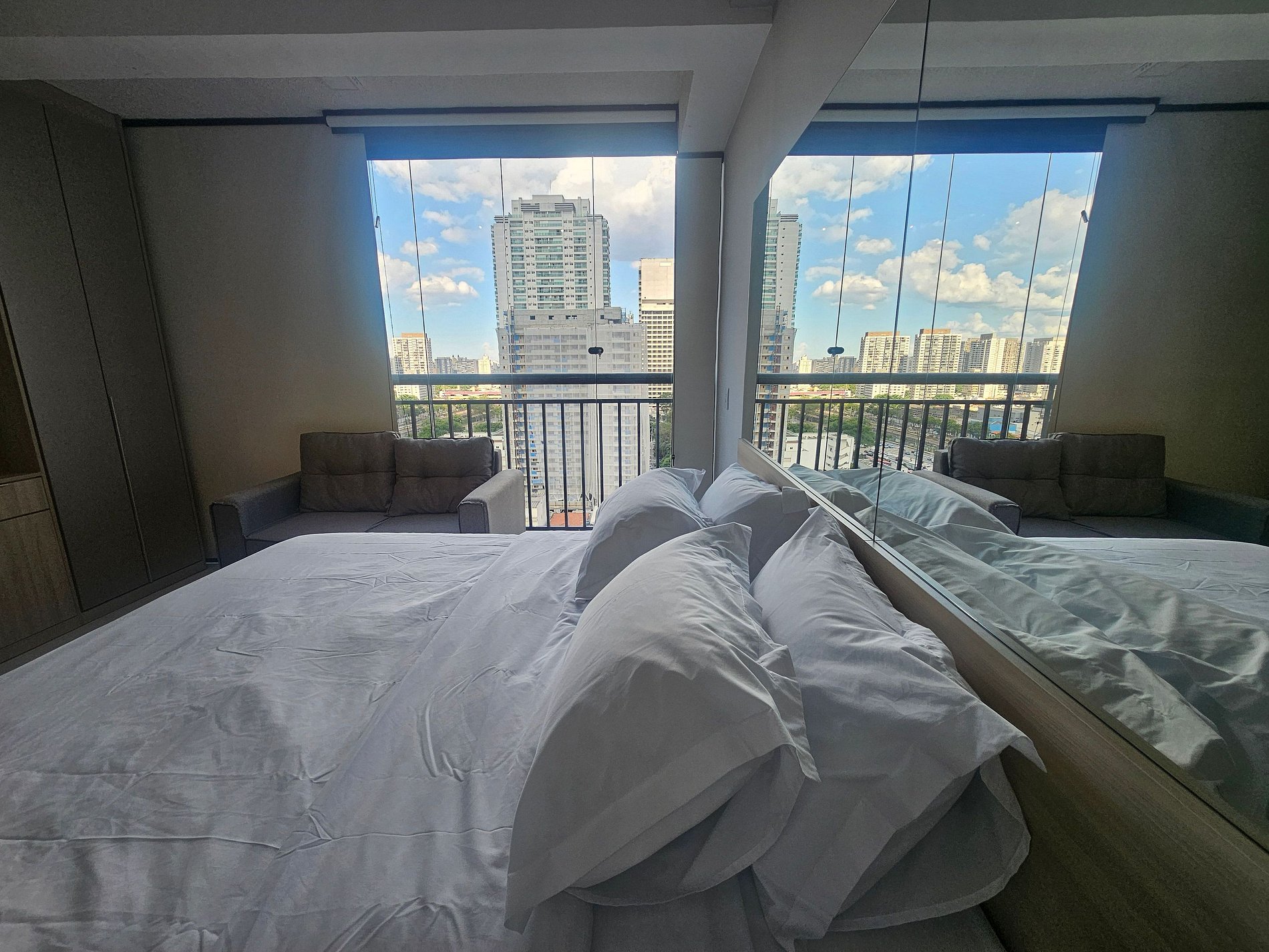 Moderno, confortável e totalmente equipado. Localização privilegiada, a poucos minutos do metrô e do Shopping Boulevard. Ideal para estadias curtas ou longas! O condomínio não possui vaga de garagem nem estacionamento, e o studio conta com cama de casal ou duas de solteiro, além de lavanderia, coworking, espaço pet, área gourmet e amenities para maior conforto dos hóspedes.