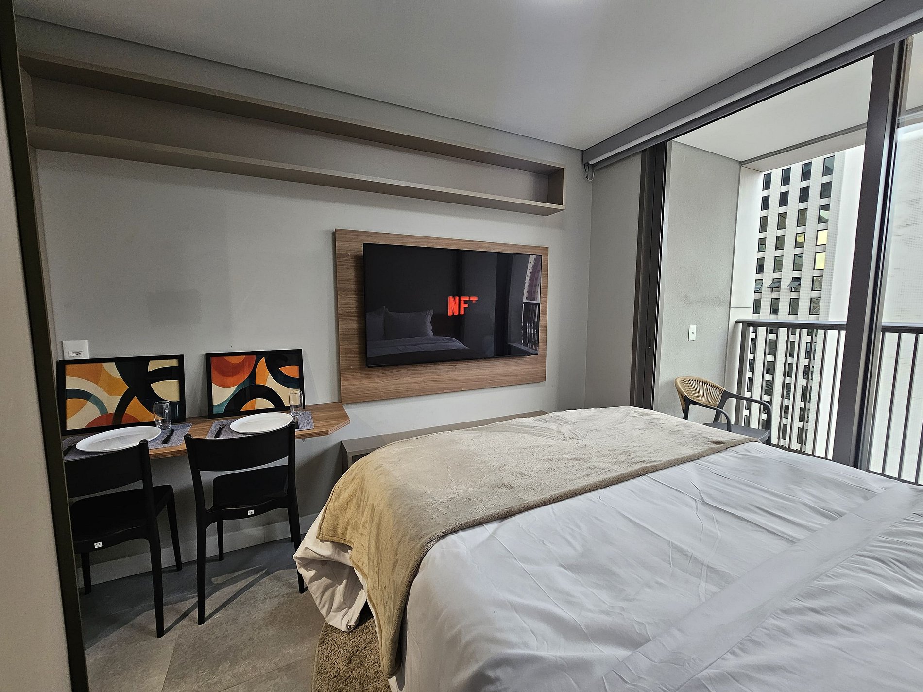 Studio completo e pronto para morar, com todos os itens essenciais para o seu conforto: cozinha equipada, enxoval de cama e banho, Wi-Fi, TV e ar-condicionado. Próximo a comércios, restaurantes e shoppings. Ideal para quem busca praticidade e bem-estar em um ambiente moderno e funcional.