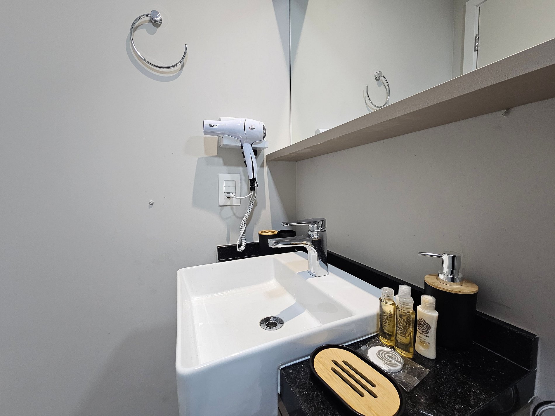 O studio foi planejado para oferecer conforto e praticidade em cada detalhe. Totalmente mobiliado, conta com uma cozinha completa, cama confortável, TV, Wi-Fi e ar-condicionado. O ambiente é moderno, bem iluminado e ideal tanto para estadias curtas quanto longas. Além disso, o prédio oferece segurança e comodidade, garantindo uma experiência agradável e tranquila.