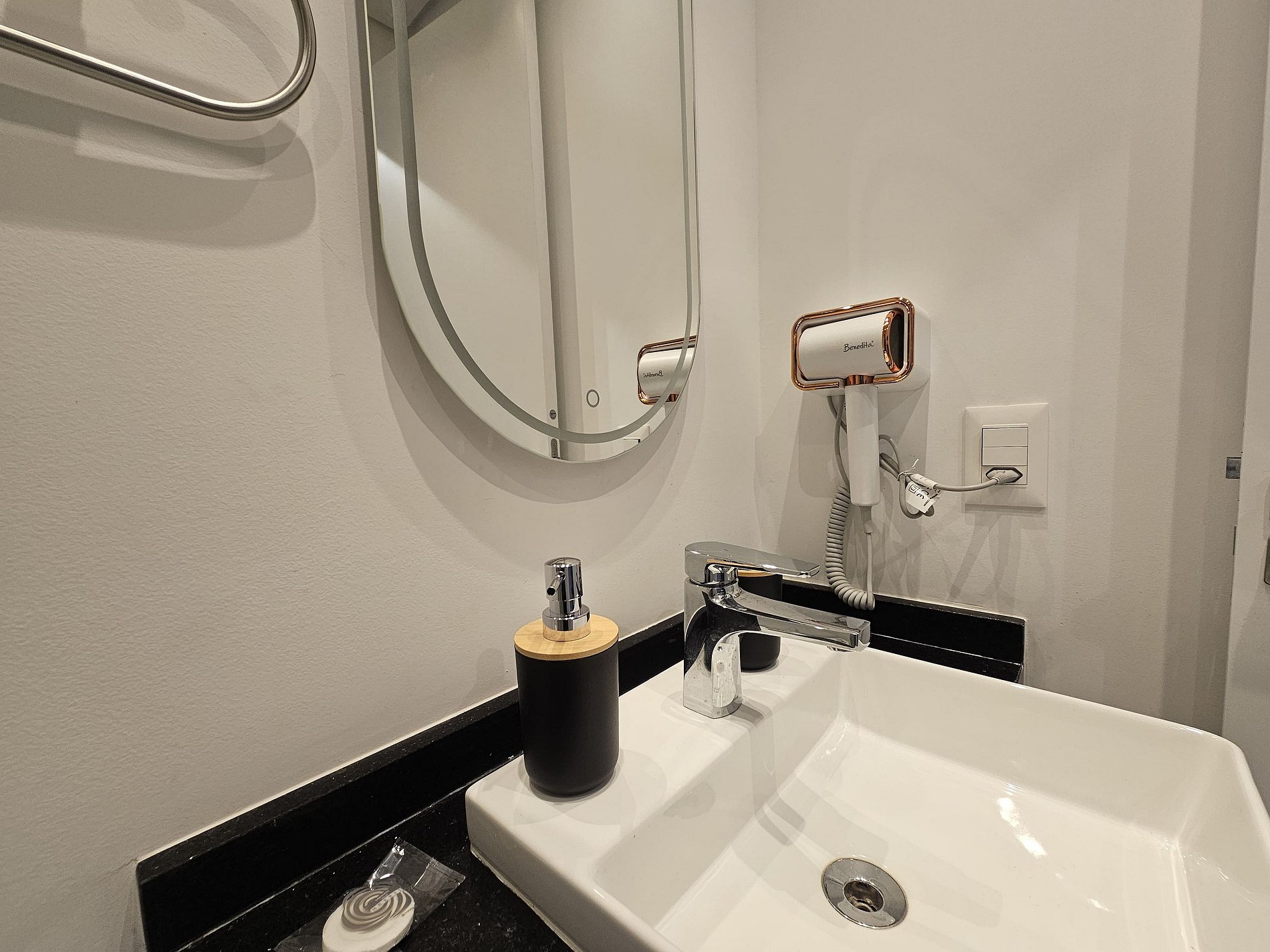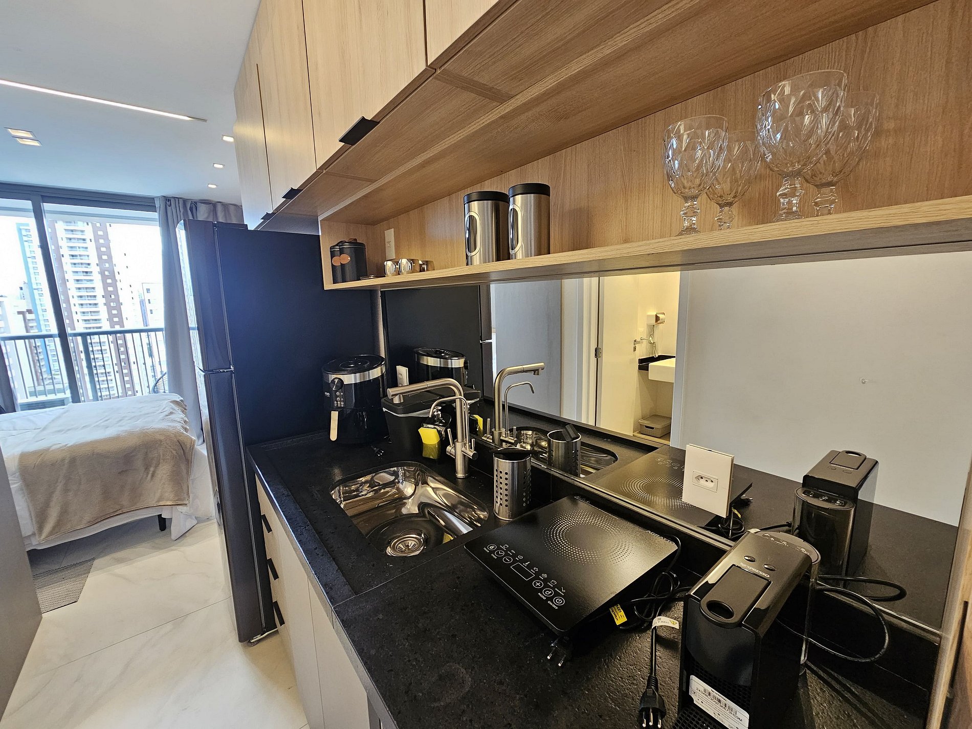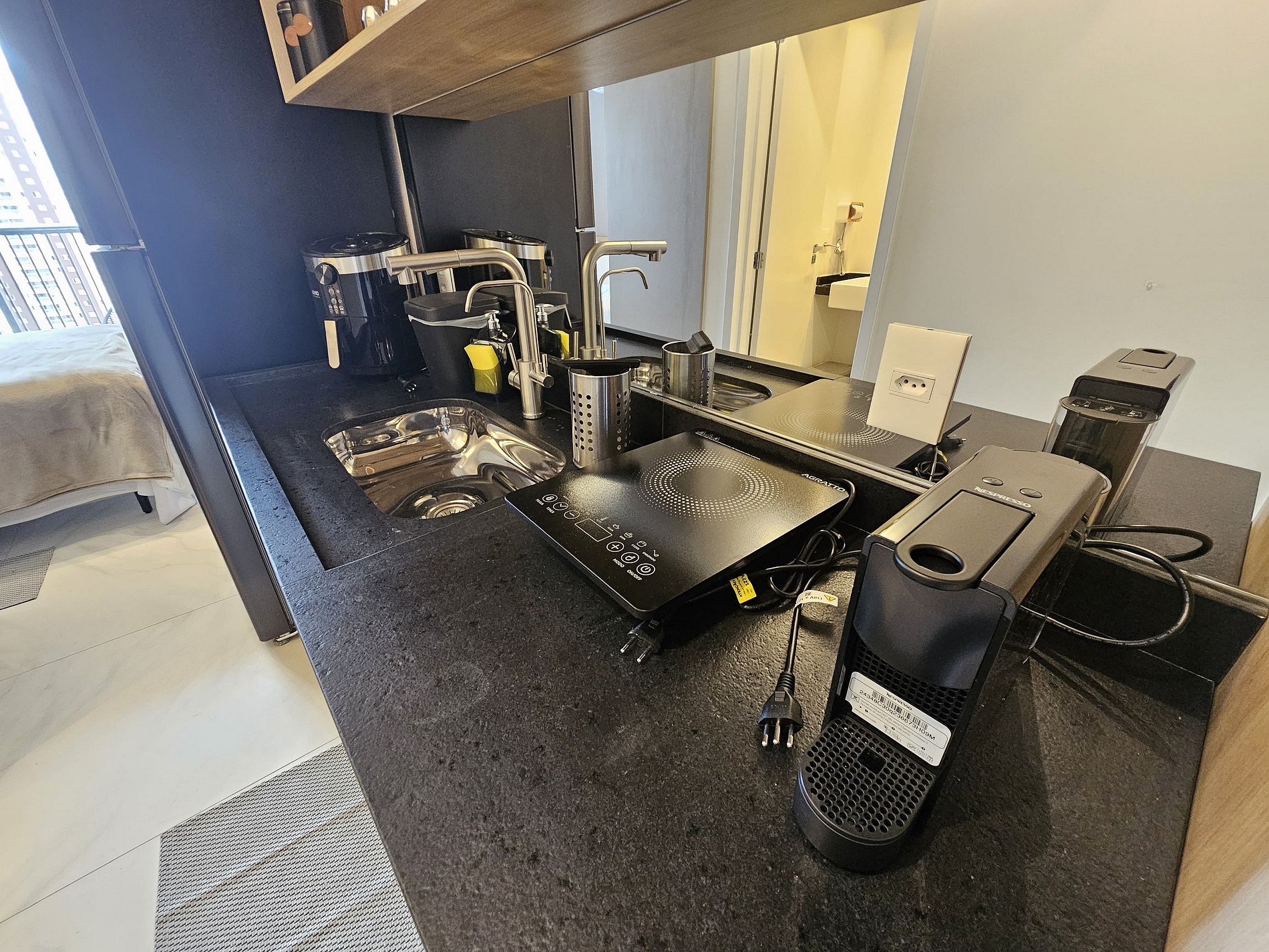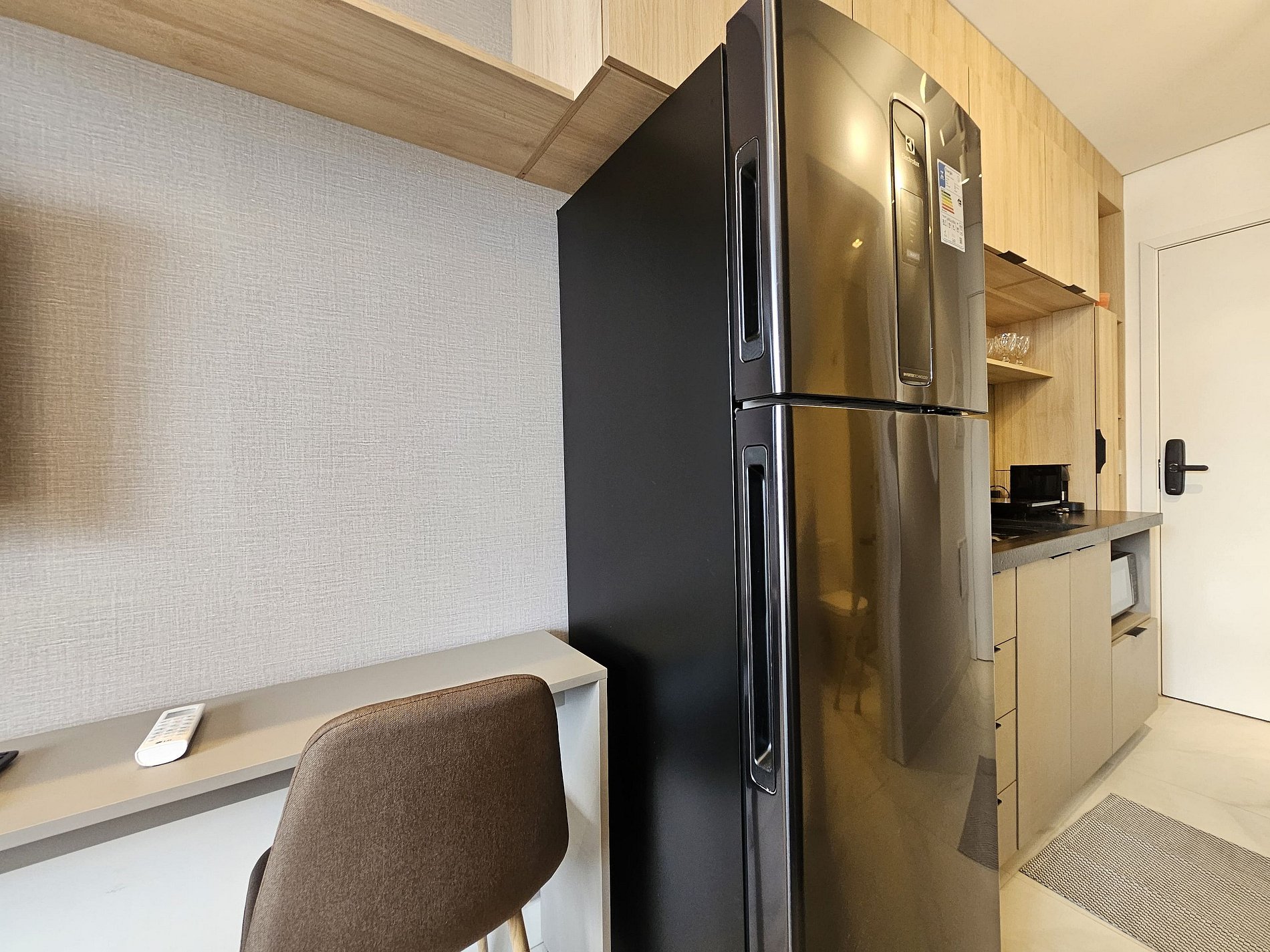 O studio foi planejado para oferecer conforto e praticidade em cada detalhe. Totalmente mobiliado, conta com uma cozinha completa, cama confortável, TV, Wi-Fi e ar-condicionado. O ambiente é moderno, bem iluminado e ideal tanto para estadias curtas quanto longas. Além disso, o prédio oferece segurança e comodidade, garantindo uma experiência agradável e tranquila.
