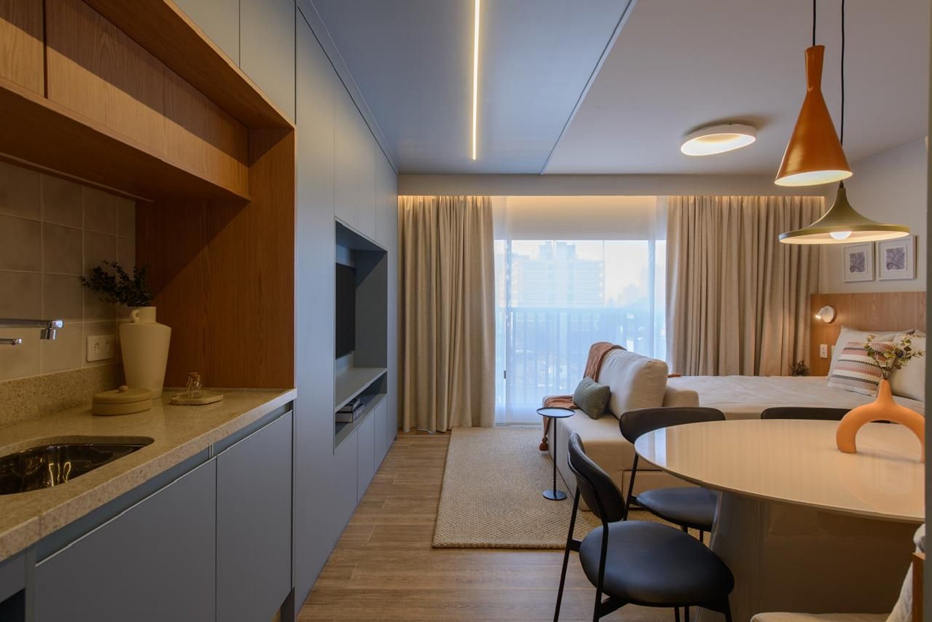 Studio completo no Tatuapé, com enxoval premium e mobília moderna. Cozinha equipada, cama confortável, sofá cama, ar-condicionado e Wi-Fi. Ideal para estadias curtas ou longas, com praticidade e conforto. Localização excelente, próximo ao metrô, mercados e restaurantes. Tudo pronto para você se sentir em casa!