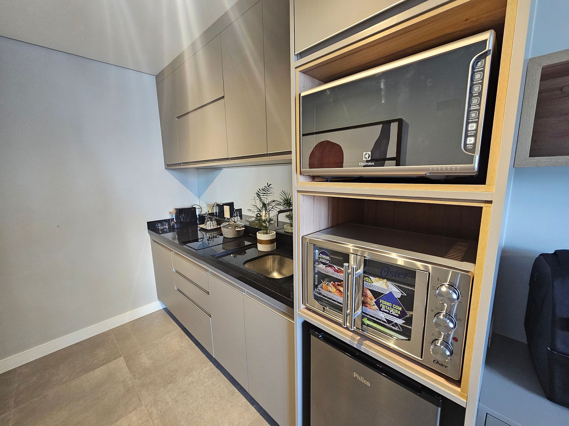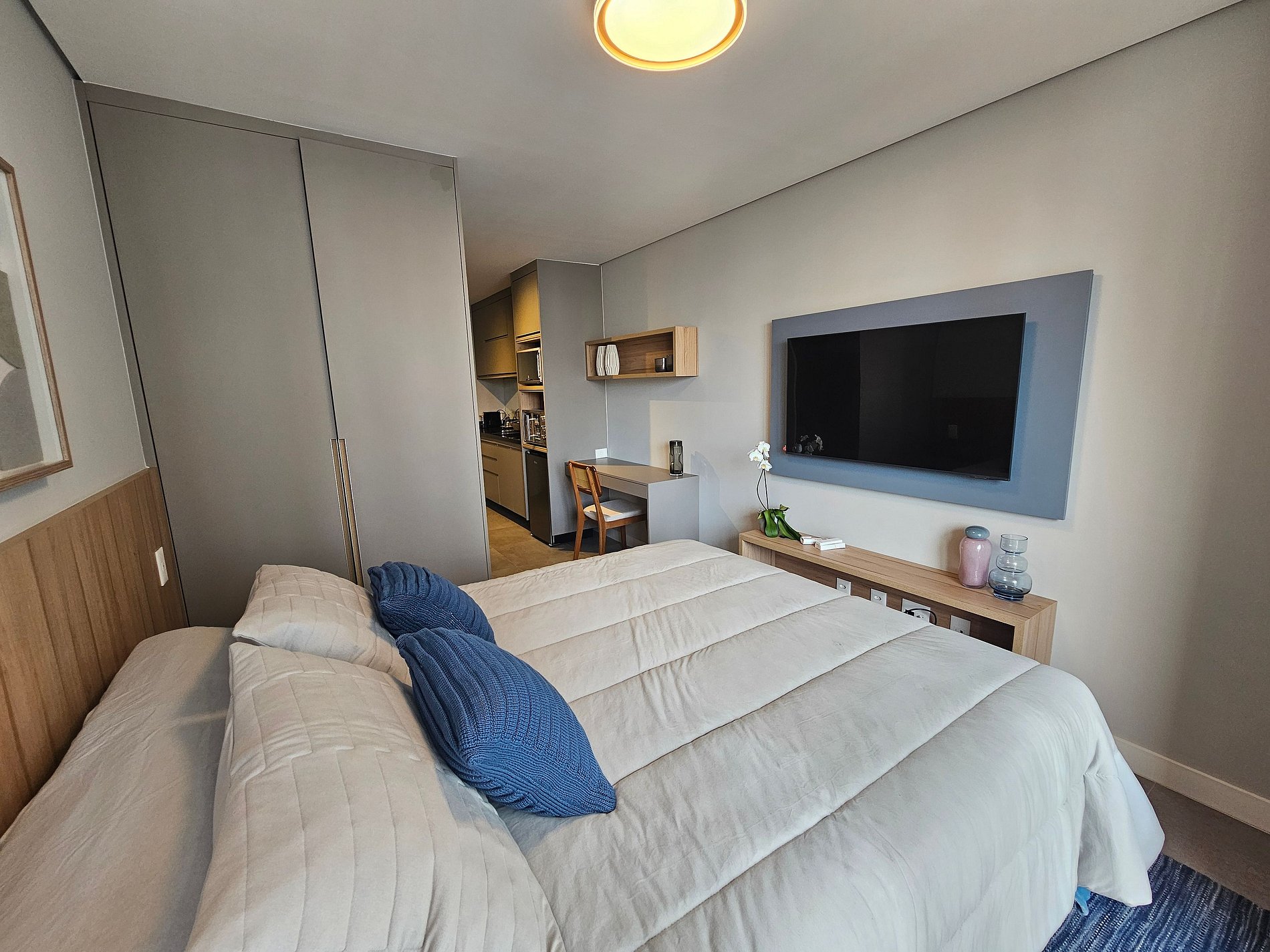 Studio completo e pronto para morar, com todos os itens essenciais para o seu conforto: cozinha equipada, enxoval de cama e banho, Wi-Fi, TV e ar-condicionado. Próximo a comércios, restaurantes e shoppings. Ideal para quem busca praticidade e bem-estar em um ambiente moderno e funcional.