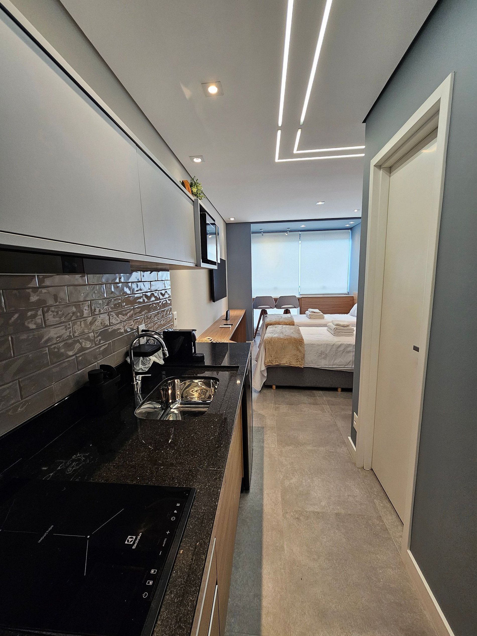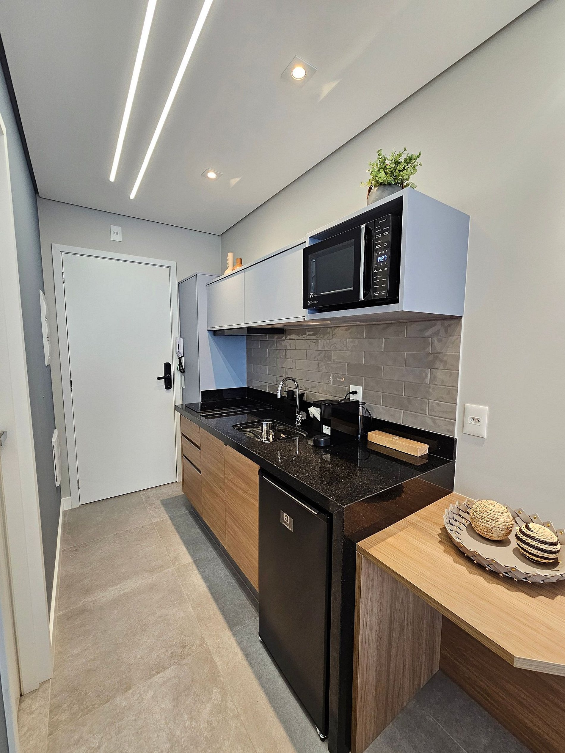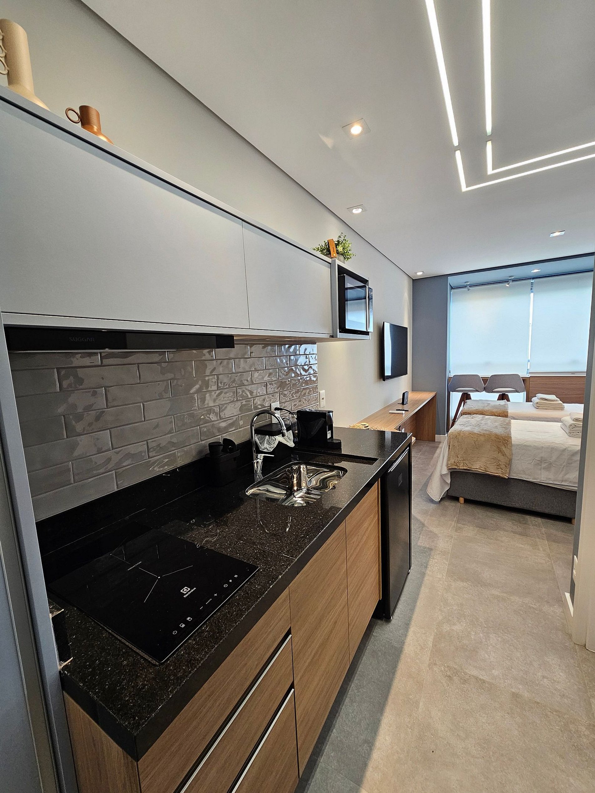 O studio foi planejado para oferecer conforto e praticidade em cada detalhe. Totalmente mobiliado, conta com uma cozinha completa, cama confortável, TV, Wi-Fi e ar-condicionado. O ambiente é moderno, bem iluminado e ideal tanto para estadias curtas quanto longas. Além disso, o prédio oferece segurança e comodidade, garantindo uma experiência agradável e tranquila.