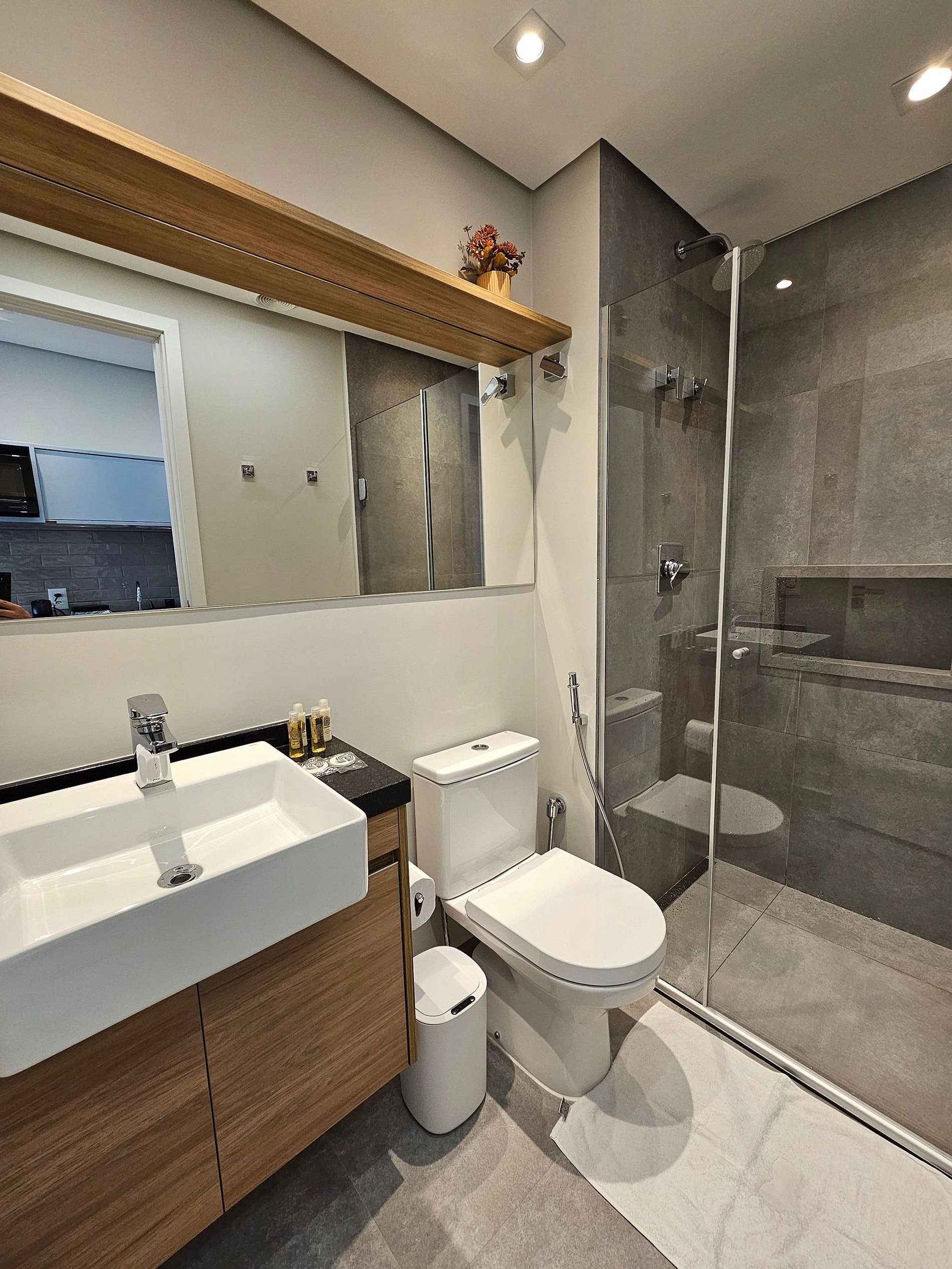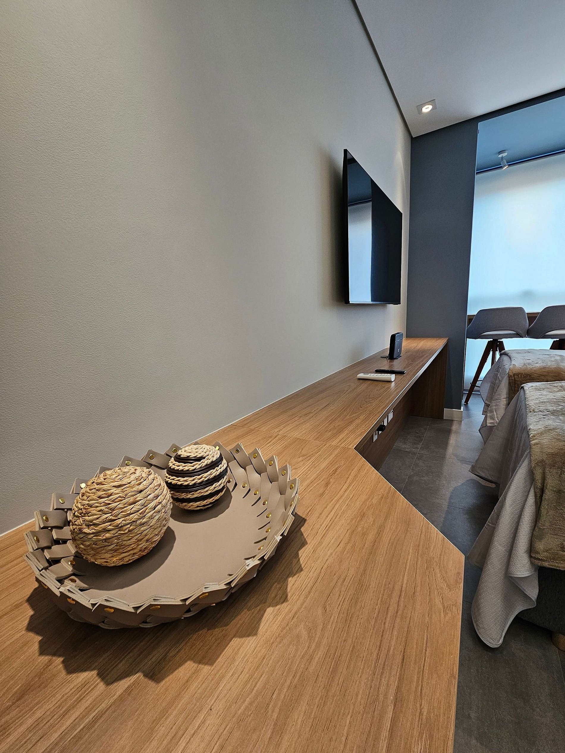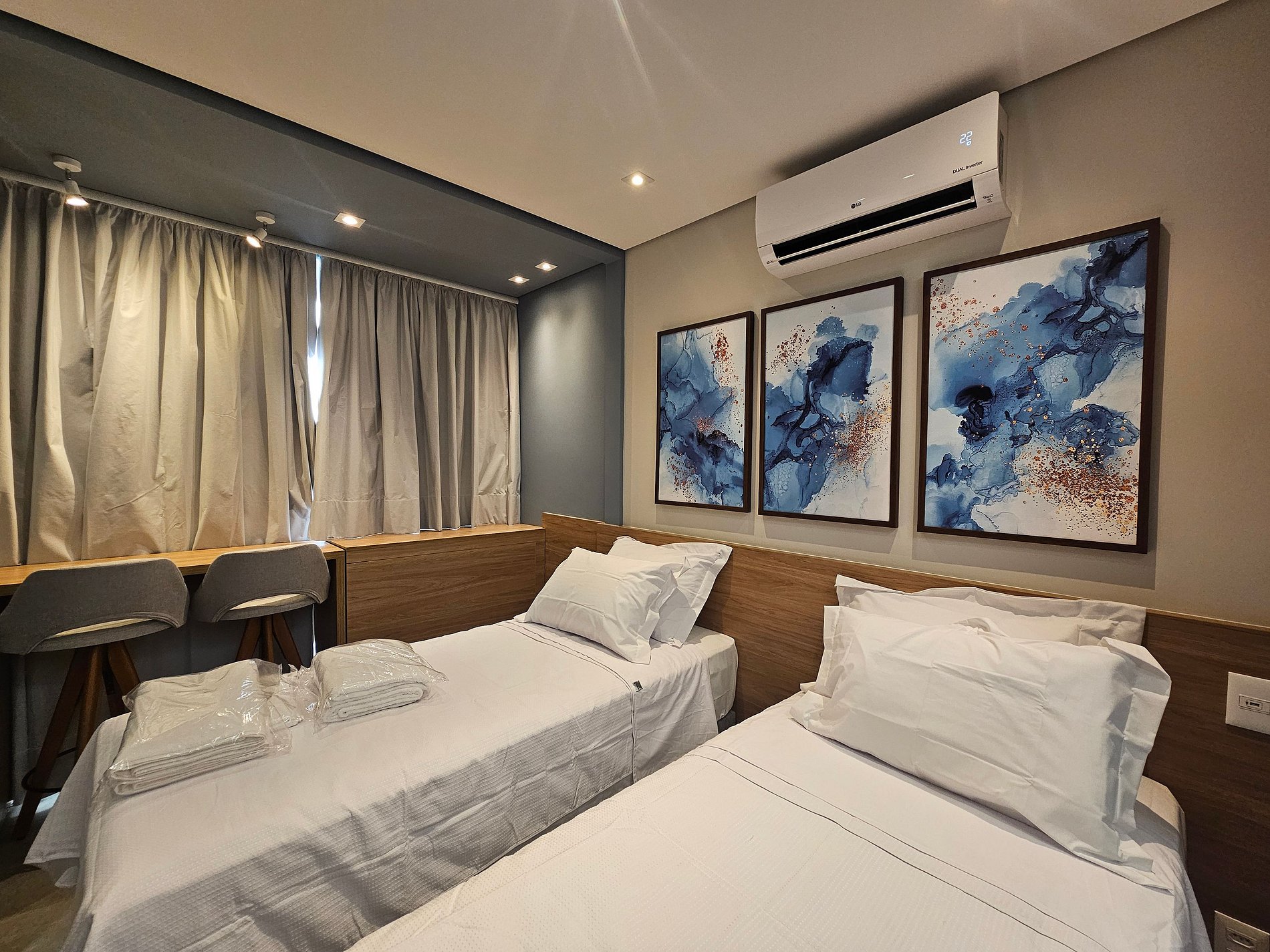 O studio foi planejado para oferecer conforto e praticidade em cada detalhe. Totalmente mobiliado, conta com uma cozinha completa, cama confortável, TV, Wi-Fi e ar-condicionado. O ambiente é moderno, bem iluminado e ideal tanto para estadias curtas quanto longas. Além disso, o prédio oferece segurança e comodidade, garantindo uma experiência agradável e tranquila.