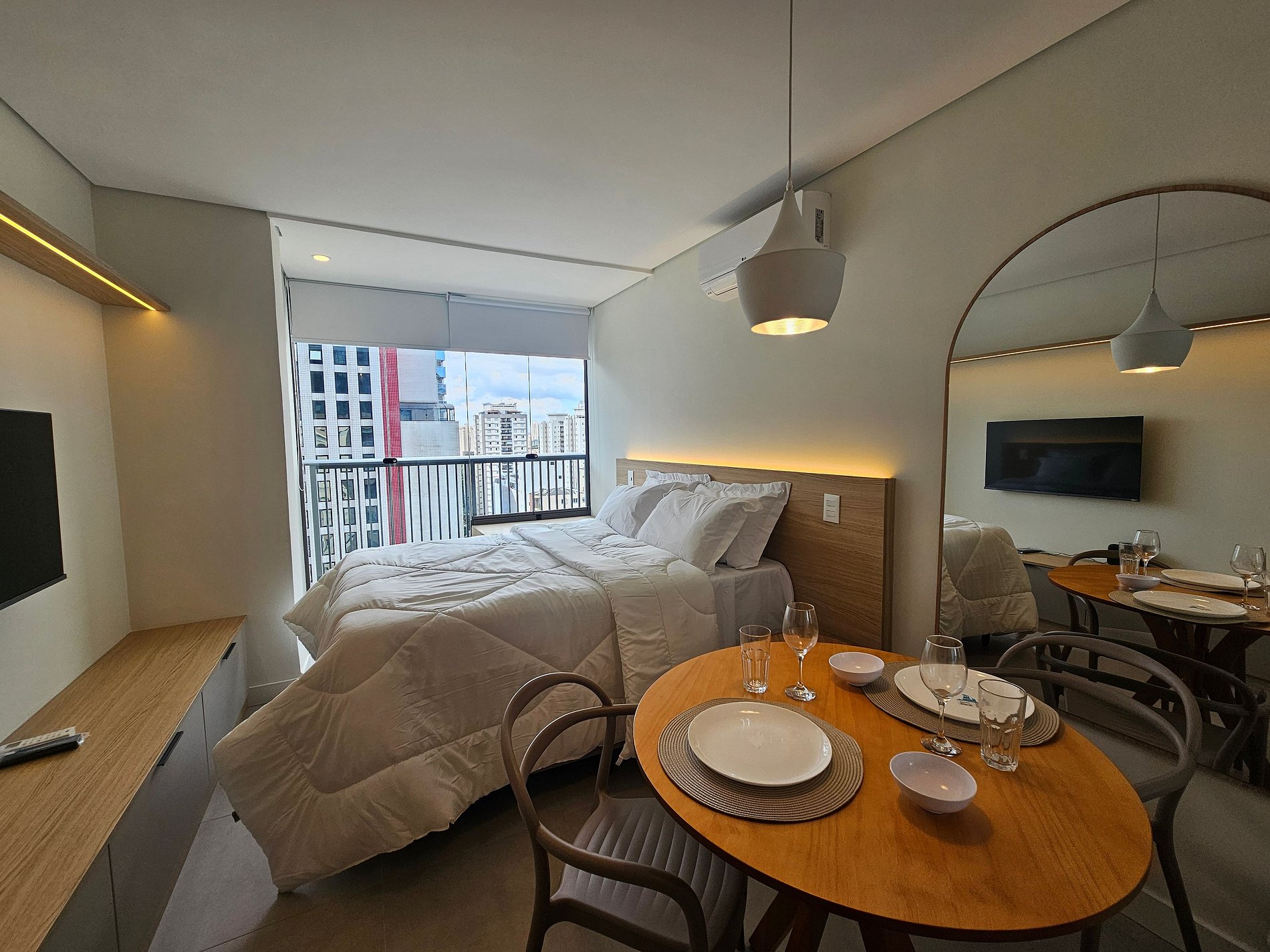 Edifício recém entregue, com unidades totalmente mobiliadas e decoradas para que possar ter uma estadia única. O Edifício conta com uma grande área de convivência que conta com Academia, Piscina, salão de festa, espaço gastronômico, espaço para trabalho e muito mais. Localizado a poucos passos da Estação de Metrô e de uma vasta gama de transportes.