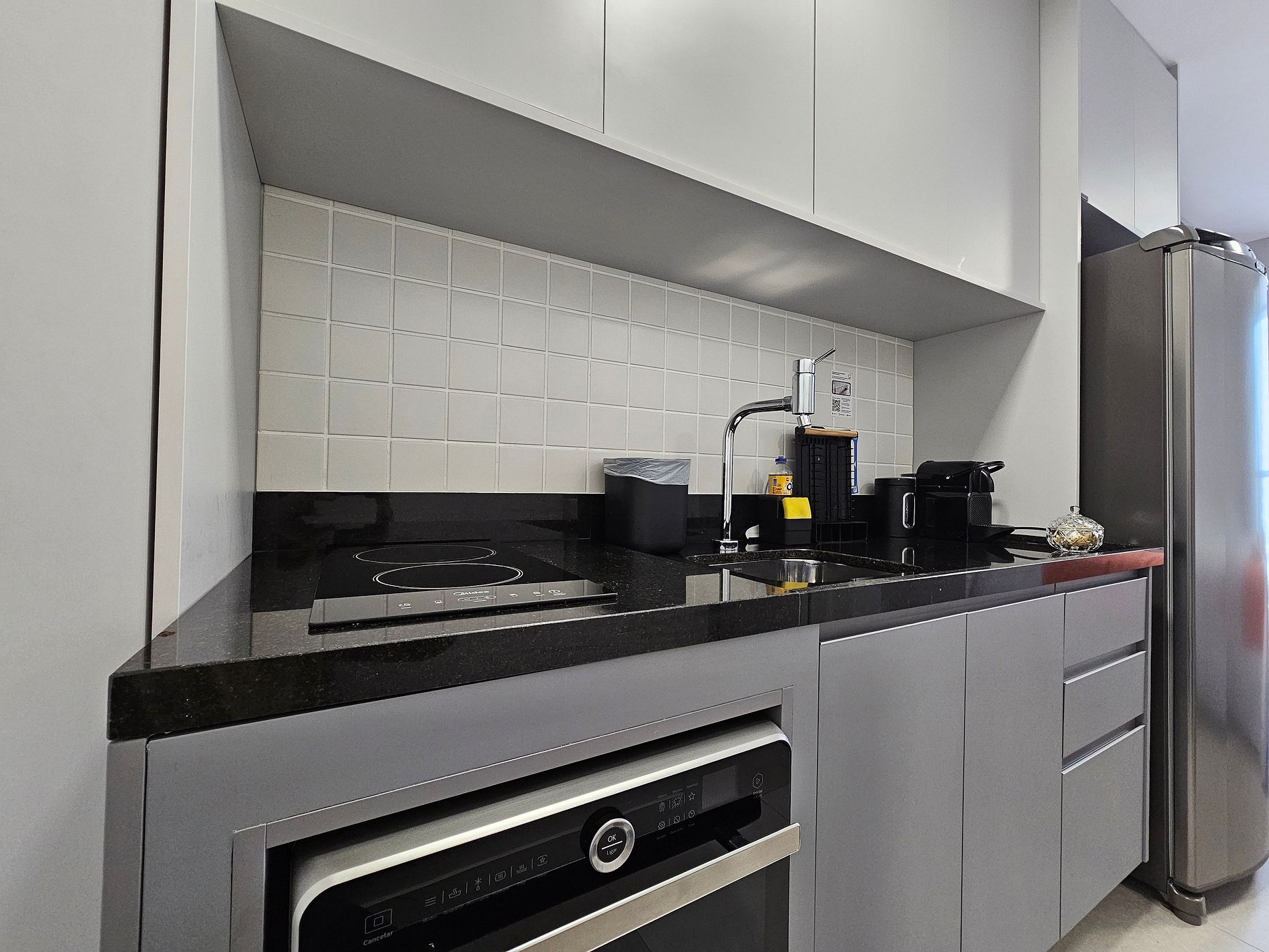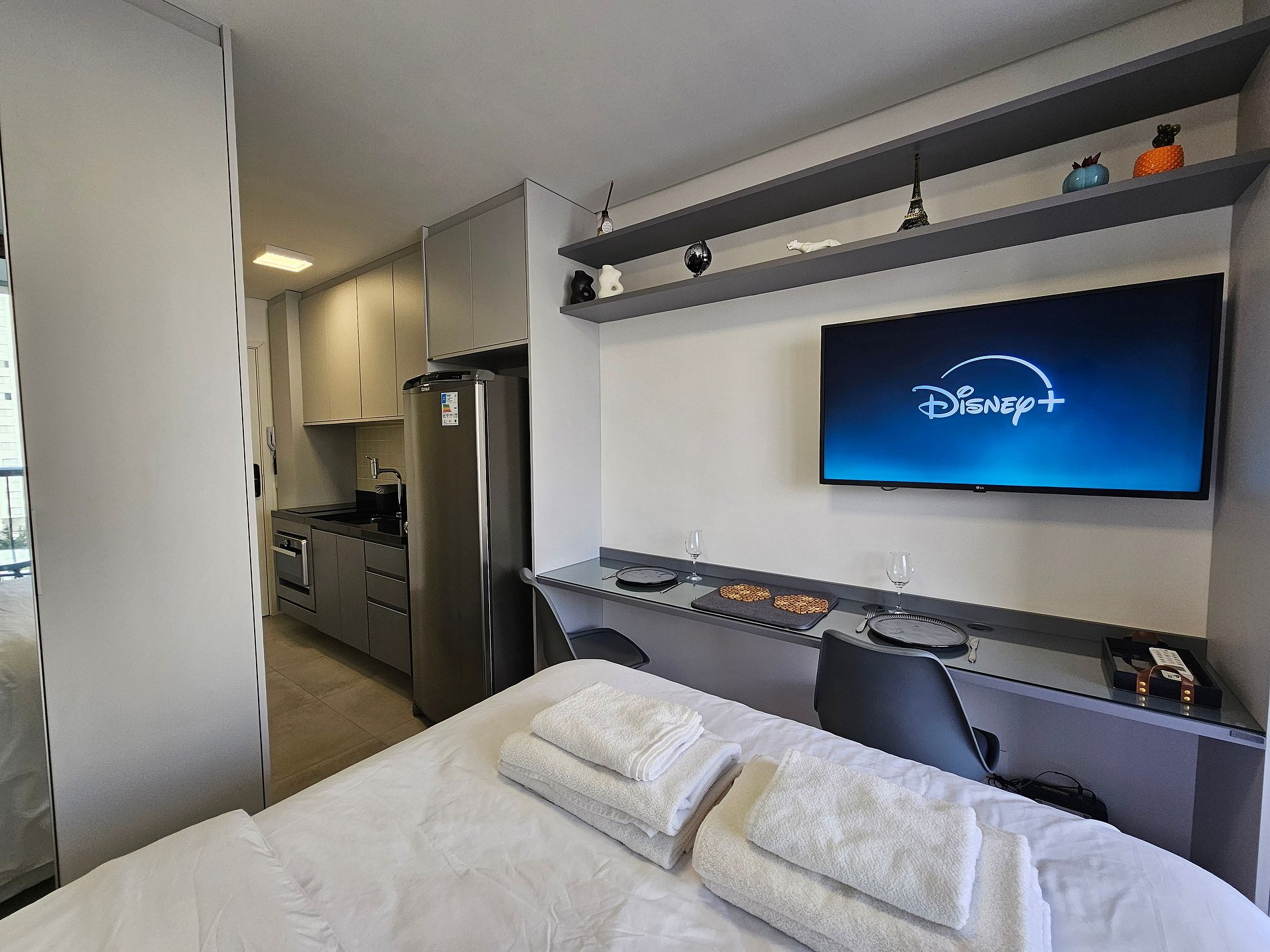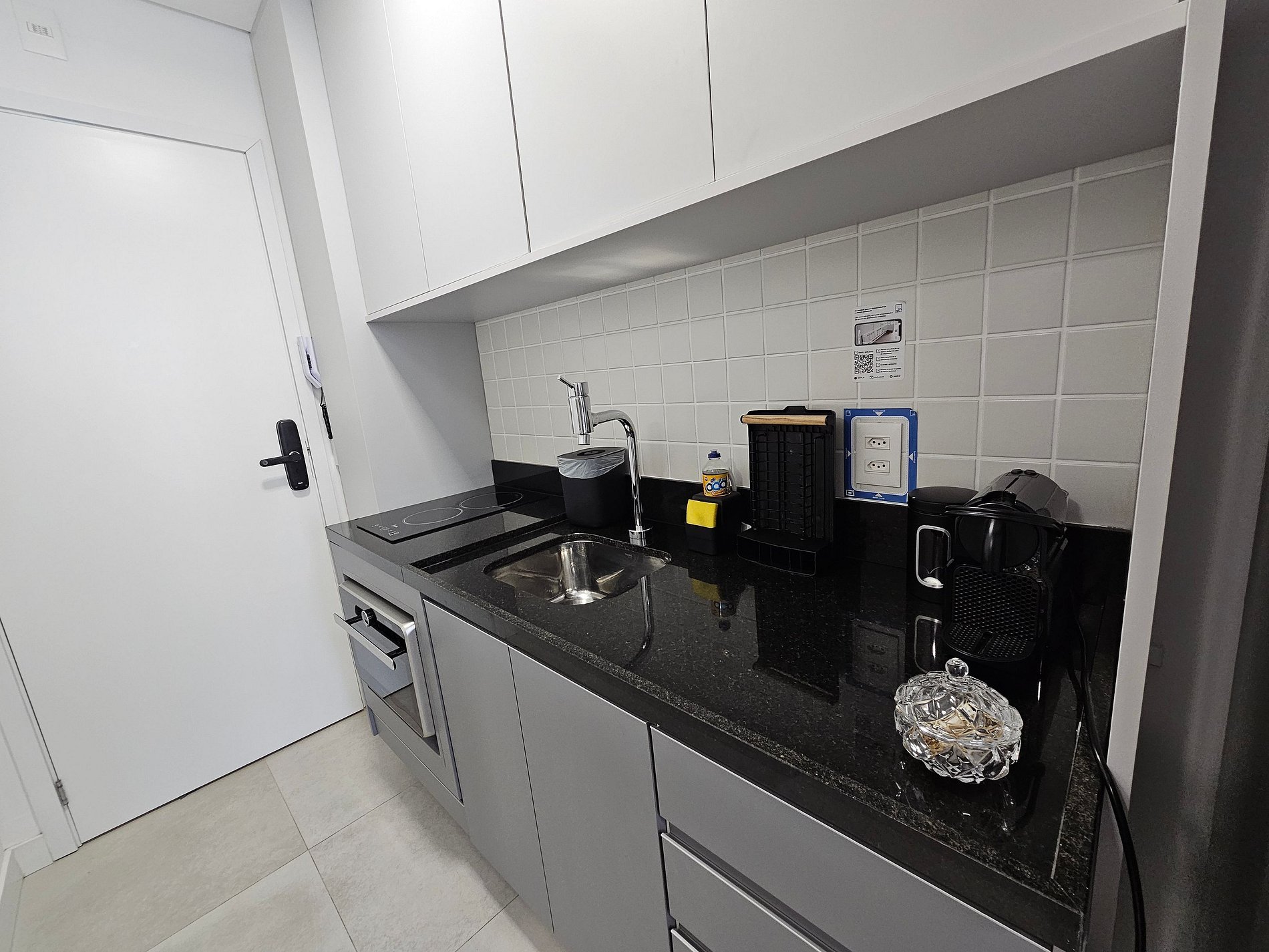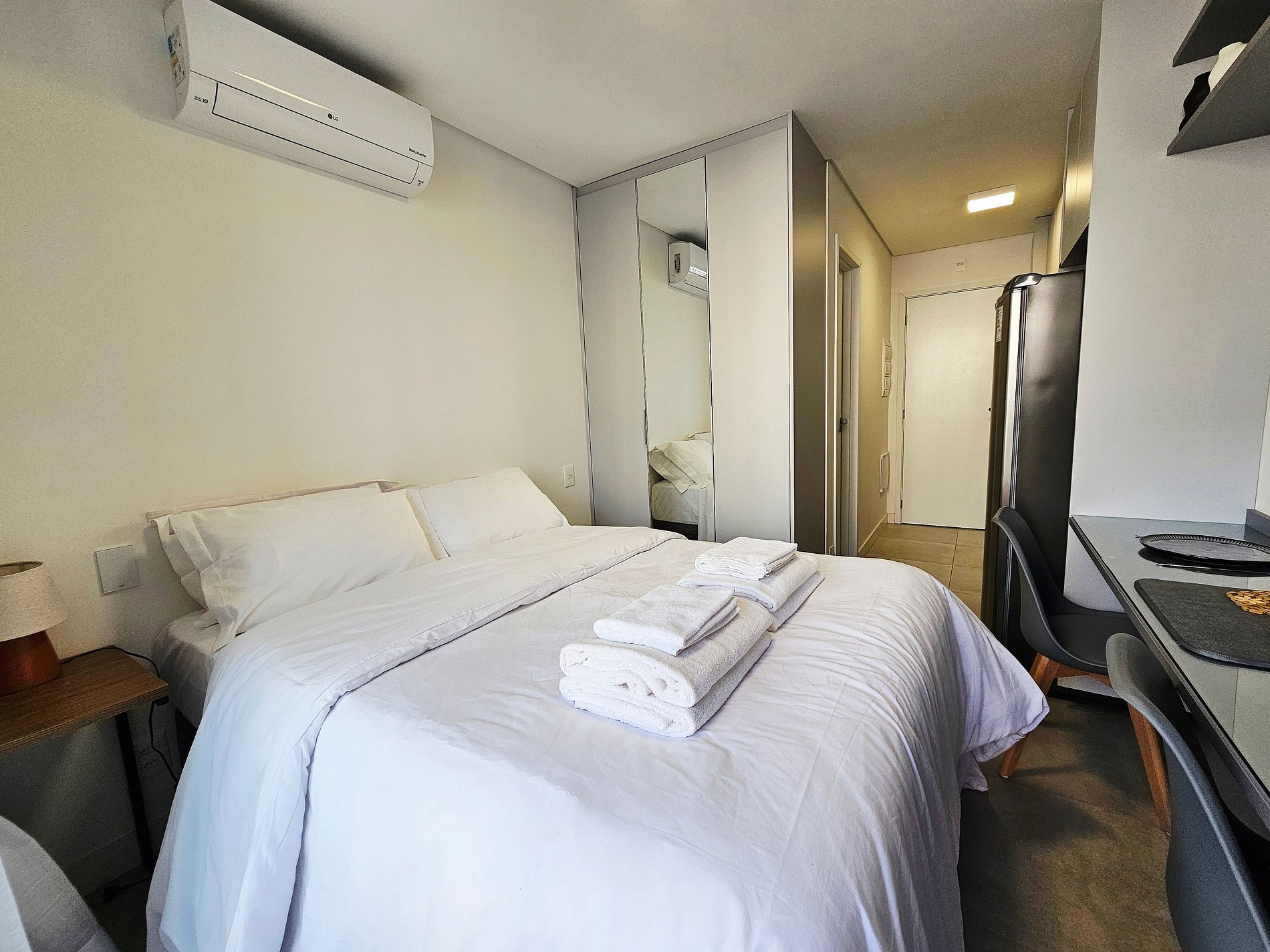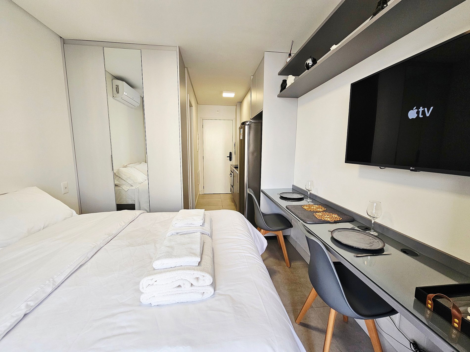 O studio foi planejado para oferecer conforto e praticidade em cada detalhe. Totalmente mobiliado, conta com uma cozinha completa, cama confortável, TV, Wi-Fi e ar-condicionado. O ambiente é moderno, bem iluminado e ideal tanto para estadias curtas quanto longas. Além disso, o prédio oferece segurança e comodidade, garantindo uma experiência agradável e tranquila.